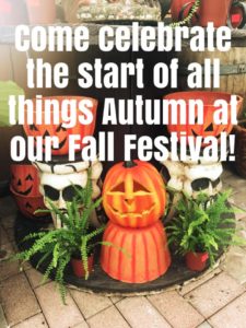 As you wander through our garden center filled with fall favorites like Mums, pumpkins and whimsical Halloween decorations, your nose will be hit with the aroma of delicious food. Bring your appetite because our concession stand will be open and we’ll have several food vendors. Fill your belly with a gyro or sausage sandwich from the Gyro Truck or savor some of Sammy’s Caribbean Grill wraps, BBQ or Jerk chicken, cheese steak and other lunch platters.